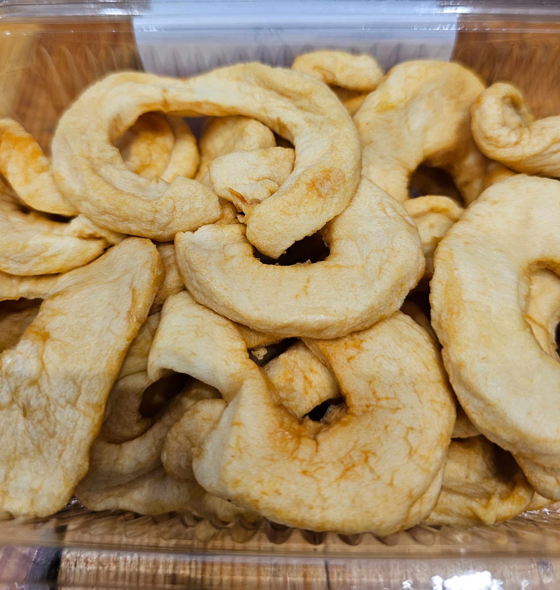Enjoy the crisp, wholesome flavor of our Dried Apple Rings, made from premium apples that are sliced and dried to preserve their natural sweetness and tangy taste. Each ring offers a satisfying chew and a delightful burst of apple flavor, perfect for a nutritious and convenient snack.Ideal for on-the-go eating, adding to trail mixes, or incorporating into baked goods and cereals, these Dried Apple Rings provide versatility and a touch of natural sweetness. Rich in dietary fiber and essential nutrients, they offer a healthful addition to your diet while delivering classic apple goodness.Key Features:Premium apple rings dried to retain natural sweetness and flavor. Crisp, tangy taste with a chewy texture. High in dietary fiber and essential nutrients. Perfect for snacking, baking, or enhancing recipes. Free from artificial additives and preservatives. Packaged to preserve freshness and quality.